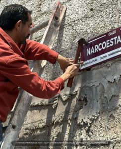Como parte de esta manifestación simbólica, también se modificaron los nombres de algunas calles, colocando denominaciones como “Narcoestado” y “Cártel La Barredora”, en alusión a presuntos actos de corrupción y a la percepción de inseguridad que, aseguran, ha crecido en la región.