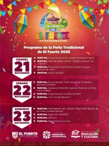 El H. Ayuntamiento de El Fuerte, a través de la Dirección de Promoción y Acción Social y la Dirección de Educación y Cultura, invita a toda la ciudadanía a disfrutar del programa oficial preparado especialmente para esta gran fiesta.