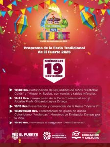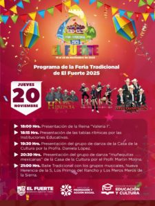 El H. Ayuntamiento de El Fuerte, a través de la Dirección de Promoción y Acción Social y la Dirección de Educación y Cultura, invita a toda la ciudadanía a disfrutar del programa oficial preparado especialmente para esta gran fiesta.