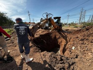 Los Mochis, Ahome, Sin.– Por indicaciones del Presidente Municipal, Antonio Menéndez de Llano Bermúdez, la Junta de Agua Potable y Alcantarillado del Municipio de Ahome atendió de manera inmediata una afectación sanitaria en el subcolector de la colonia Rosendo G. Castro.