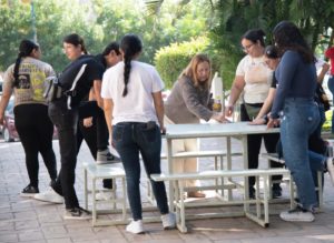 “Entonces, quien asuma la responsabilidad de adoptar esa mesa va a tener también la responsabilidad de estar vigilando que se mantenga limpia y, sobre todo, que sea un espacio que se mantenga en el Reto Mejora permanentemente, porque es parte de que esta actividad no solamente es por el inicio del segundo semestre de este ciclo escolar, sino que también sea el inicio de una secuencia de actividades que vamos a estar trabajando de manera permanente alineados a lo que es el Reto Mejora: Cuida tu Espacio Universitario”, sostuvo.
