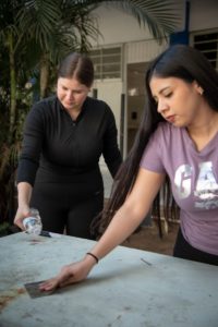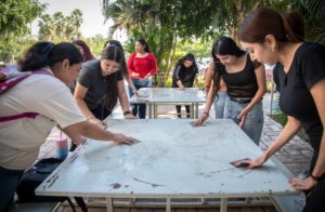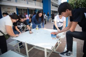 Ahí se dieron cita estudiantes de licenciatura y posgrado, modalidad escolarizada y semiescolarizada quienes fueron convocados por la dirección a cargo de la doctora Gloria Isabel Camacho Bejarano para “fortalecer el trabajo colaborativo, el sentido de pertenencia y el cuidado de los espacios comunes, mediante la adopción y restauración de las mesas y bancas de usos múltiples ubicadas en la explanada de la Facultad de Trabajo Social”.