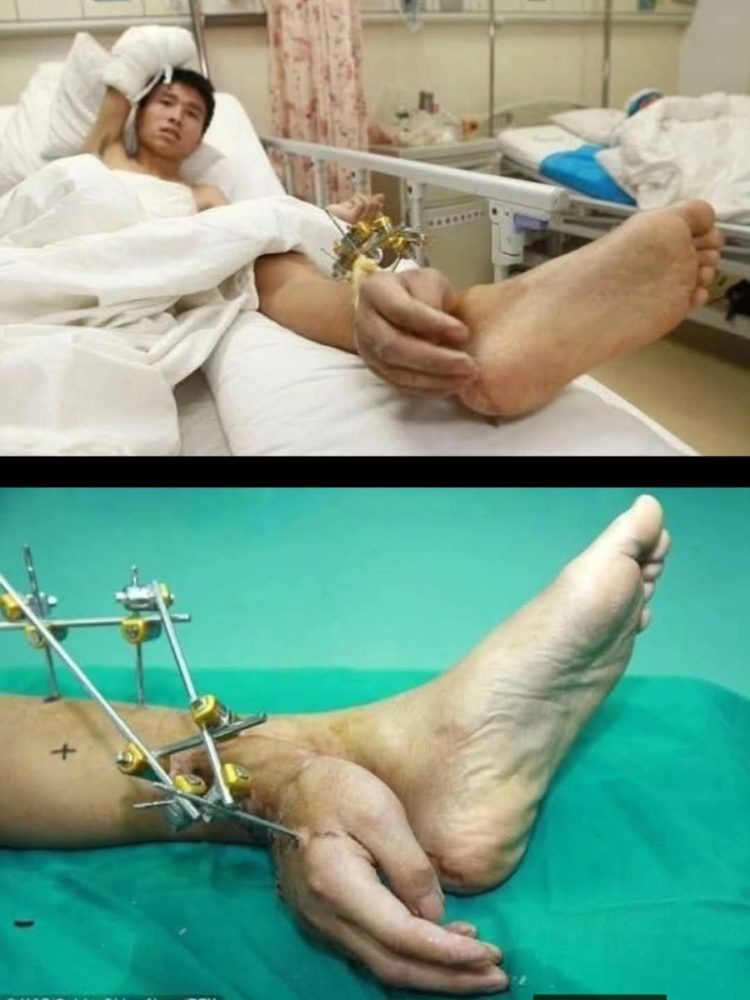 En 2013 ocurrió un suceso médico bastante impresionante. Un trabajador chino llamado Xie Wei sufrió un accidente tan grave que su mano quedó completamente amputada. Para salvarla los médicos tomaron una decisión extrema: cosieron temporalmente la mano a su tobillo izquierdo.