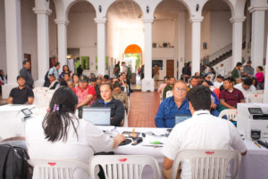 La atención de la Oficina Móvil del SAT se realizó en el patio central del edificio del Ayuntamiento de Navolato, donde se facilitó el acceso a diversos trámites fiscales que comúnmente requieren traslado a otros municipios, beneficiando tanto a la ciudadanía en general como a microempresarios.