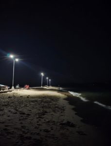 Los Mochis, Ahome, Sinaloa. A 25 de Marzo de 2026.- Las brigadas de trabajo de los servicios públicos del Ayuntamiento de Ahome, realizan trabajos de mantenimiento del alumbrado y limpieza en la playa de El Maviri, previo a la gran afluencia de visitantes durante el periodo vacacional de Semana Santa y Semana de Pascua.