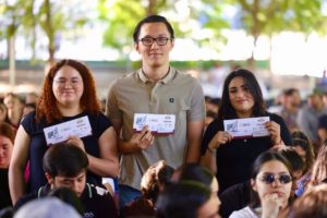 A nombre de los nuevos beneficiarios habló la joven Ana Guadalupe Germán Sauceda, quien se mostró contenta al igual que sus compañeros de recibir su tarjeta del Bienestar, que le asegura esta beca por los siguientes 12 meses.