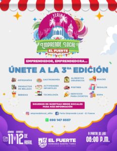 El Fuerte, Sinaloa, a 27 de marzo del 2026.- El municipio de El Fuerte se prepara para celebrar la tercera edición de la Feria Emprende Local, que en esta ocasión tendrá una temática especial dedicada a las niñas y los niños, en el marco de las celebraciones del mes de abril.