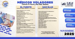 RENÉ VEGA: Periodismo Disruptivo. El Fuerte, Sinaloa, a 03 de noviembre del 2025.- El H. Ayuntamiento de El Fuerte, a través del Sistema DIF Municipal, invita a las familias del municipio a aprovechar los servicios médicos gratuitos que estarán ofreciendo los Médicos Voladores durante el mes de noviembre de 2025.