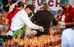 Además, los restauranteros del Muelle 33 y el Malecón elaboraron un mega ceviche de 700 kilos, el cual fue repartido de forma gratuita entre los asistentes.