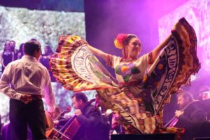 El cantante mazatlecos Adán Pérez participó con la interpretación de “La india bonita” acompañado por la OSSLA y la Banda Estrellas de Sinaloa.