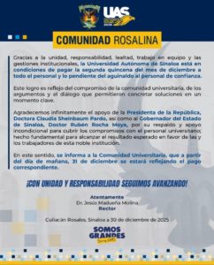 Mensaje del Rector Dr. Jesús Madueña Molina a la comunidad Rosalina.-