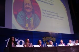 “Para finalizar mi mensaje, quiero referirme a la niña que con cinco años ya sabía leer, que a los 11 terminó la primaria y a los 16 estaba ingresando a una licenciatura […]. De la mano de mi madre, que no se rindió, que criaba gallinas y ahorraba hasta el último peso con nueve hijos, es que pude llegar a cumplir mis sueños; sí, pero también me encontré con una noble universidad que me recibió a los 14 años de edad. Allá por 1977 me dio la oportunidad de estudiar, de trabajar y de cumplir esos sueños y esas metas”, contó Mazo Sandoval sobre sí misma.