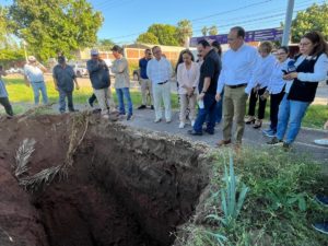 RENÉ VEGA: Periodismo Disruptivo. Los Mochis, Ahome, Sinaloa. A 20 de Octubre del 2025.- El Presidente Municipal Antonio Menéndez De Llano Bermúdez, informó que el tema del socavón de bulevar Centenario y Niños Héroes, originado por las lluvias, se está atendiendo con recursos extraordinarios propios del Ayuntamiento, y el apoyo del gobierno de Sinaloa. “Esperamos que quede concluido en diciembre”.