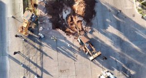 *El Alcalde Antonio Menéndez, pide a la ciudadanía tomar prevenciones y no transitar por ese sector para evitar incidentes como el del operador de maquinaria pesada que cayó al socavón, quien por fortuna no sufrió daño alguno y continúa laborando para solucionar el problema a la brevedad.-