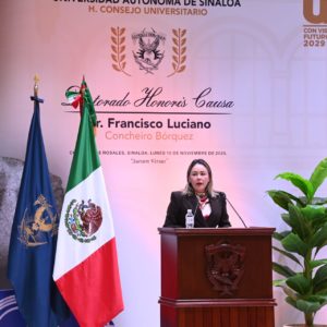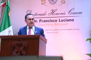 “El doctor Concheiro tiene los méritos suficientes, es un académico prestigiado a nivel nacional y en Latinoamérica (…) yo felicito a la Universidad Autónoma de Sinaloa por esta distinción que le hace al doctor Concheiro”, expresó Guerrero Verdugo.