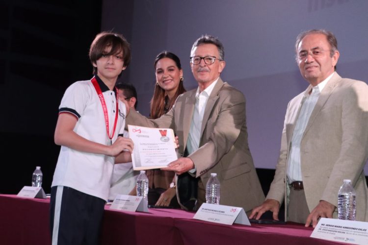 Las preseas de plata se otorgaron a Mateo Sánchez Robles y Johanna Lizeth Valdez García, también del Instituto Altum, junto con Axel Jesús Castro Sarabia del Instituto Jean Piaget del Río.