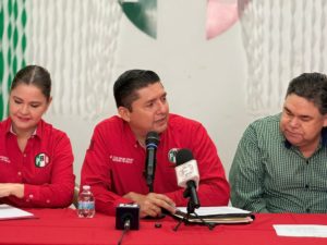En la conferencia estuvieron presentes también la dirigencia del PRI Salvador Alvarado, Luis Antonio Higuera y María Lourdes López y la dirigencia de Angostura, Kenya Sánchez Camacho y Gerardo Urías.