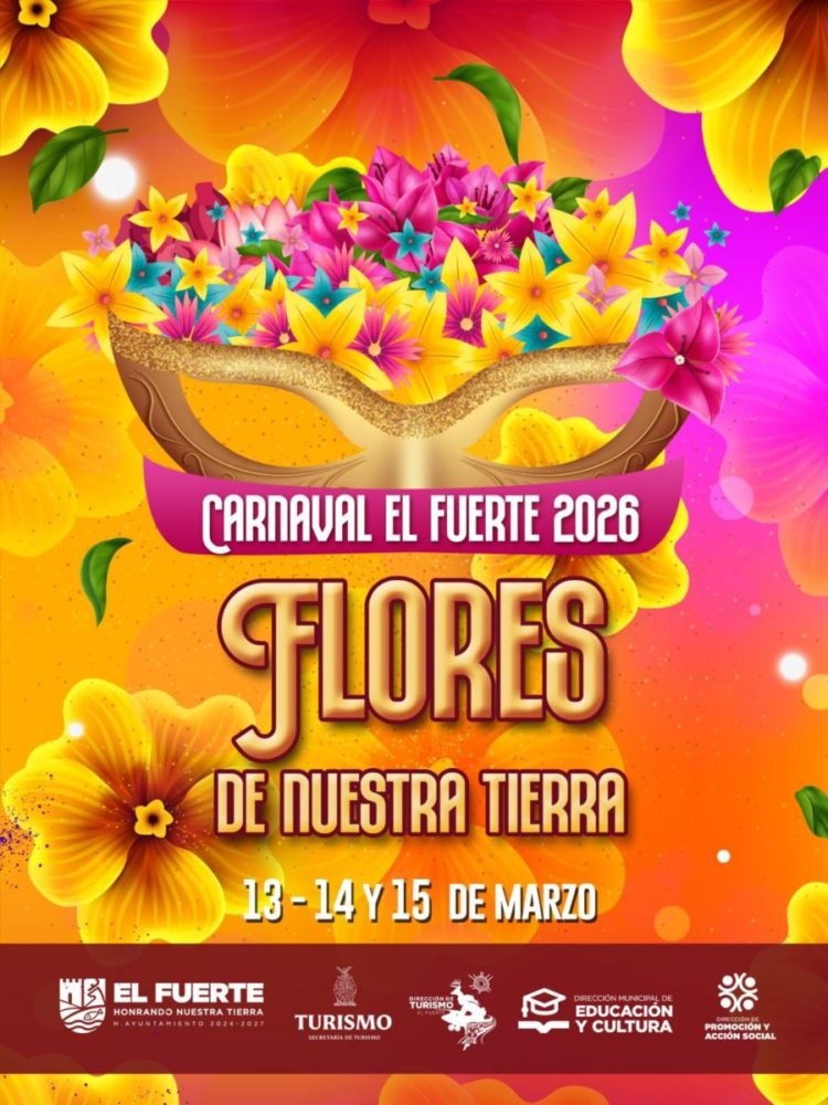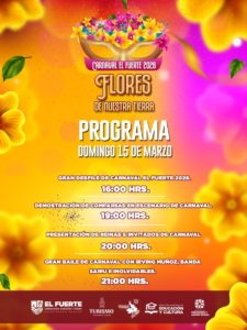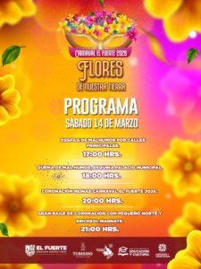 Programa de actividades del Carnaval El Fuerte 2026, “Flores de Nuestra Tierra”. 🎭🌸