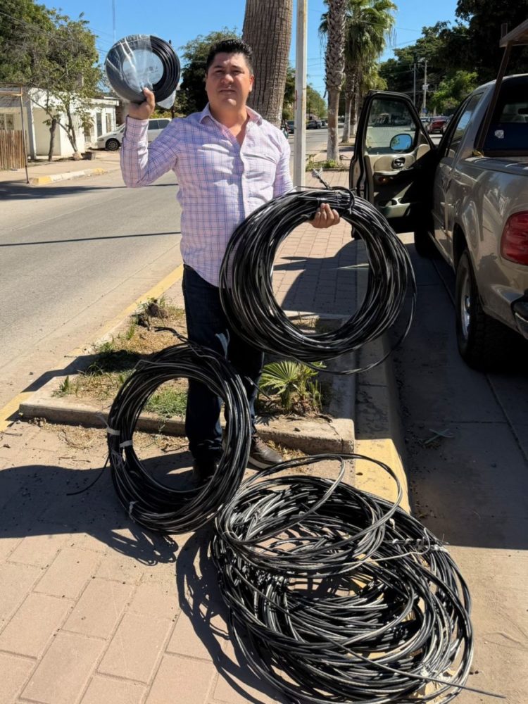 Regidor Omar Castro dona 400 metros de cableado para rehabilitar alumbrado público en Mochicahui