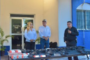 El Fuerte, Sinaloa, a 07 de noviembre del 2025.- Con el objetivo de seguir fortaleciendo las acciones en materia de seguridad, el alcalde Gildardo Leyva Ortega encabezó la entrega de dos patrullas donadas por el Gobierno del Estado, así como de 15 fusiles y 2,000 cartuchos destinados a la Dirección de Seguridad Pública y Tránsito Municipal.