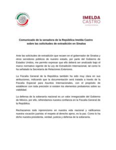Sobre la solicitud de extradición la Senadora Imelda Castro da su posicionamiento