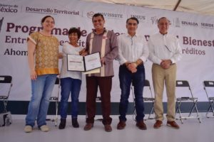 Los Mochis, Ahome, Sinaloa. A 28 de Marzo de 2026.- 405 familias ahomenses de la colonia Ferrocarrilera que carecían de certeza jurídica por asentarse en lotes irregulares recibieron sus escrituras públicas de parte del Instituto Nacional del Suelo Sustentable (INSUS), y 133 más se beneficiaron con la constancia de liquidación de sus créditos del Fondo de la Vivienda del Instituto de Seguridad y Servicios Sociales de los Trabajadores del Estado (FOVISSSTE).