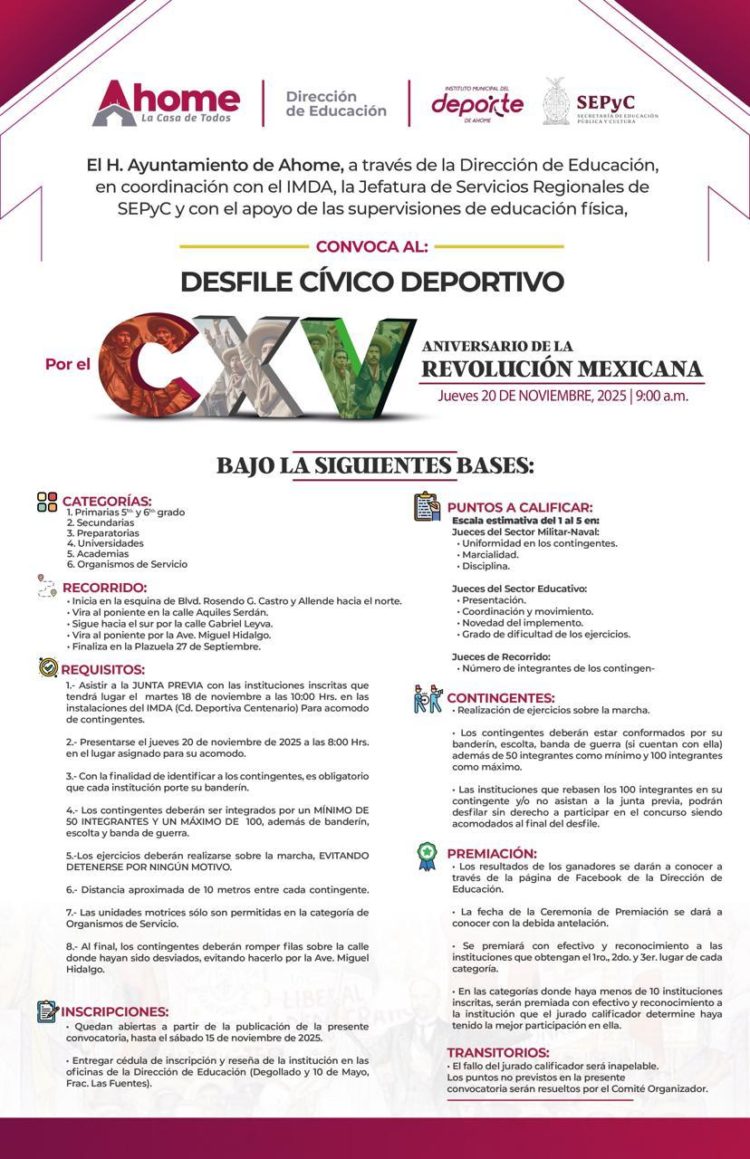 RENÉ VEGA: Periodismo Disruptivo. Los Mochis, Ahome, Sinaloa. A 05 de noviembre del 2025.- Los detalles del tradicional Desfile Cívico – Deportivo de la Revolución Mexicana para el próximo 20 de noviembre en Los Mochis, fueron dados a conocer por las autoridades que organizan el emblemático evento, quienes dijeron que las instituciones educativas han mostrado gran interés de participación, por lo que se espera un bonito y emotivo programa.