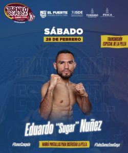 Asimismo, los asistentes podrán disfrutar de la transmisión especial de la pelea del campeón mundial Eduardo ‘Sugar’ Núñez, sumando emoción a este gran fin de semana deportivo.