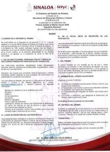 La Lic. Gloria Himelda Félix Niebla, titular de la SEPyC, expresó: “El plazo fenece el próximo 16 de enero de 2026 para la inscripción correspondiente; la idea es postular para honrar, visibilizar y reconocer a quienes hacen de Sinaloa un mejor lugar para vivir. Esta es la intención que encabeza nuestro Gobernador, el Doctor Rubén Rocha Moya, en el marco del compromiso social y humanista de su gobierno”.