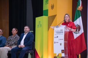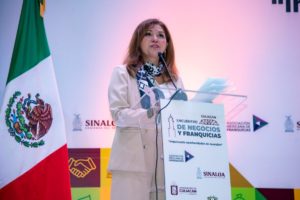 En representación del gobernador del Estado, doctor Rubén Rocha Moya, la secretaria general de Gobierno, Yeraldine Bonilla Valverde, reconoció a los organizadores por impulsar espacios que fortalecen el desarrollo económico, la innovación y el emprendimiento en la entidad.